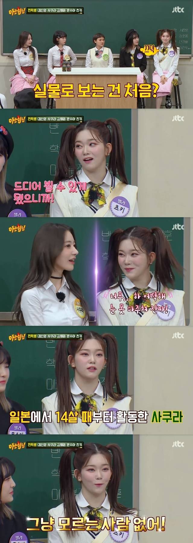 5월 14일 방송된 JTBC 예능 '아는 형님'(이하 '아형') 332회에서는 르세라핌 사쿠라·김채원, 빌리 문수아·츠키, 셀럽파이브 김신영이 형님학교로 전학을 왔다.
