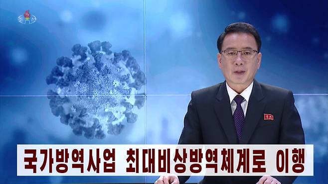 [서울=뉴시스] 북한 조선중앙TV가 14일 국가방역사업 최대비상방역체계로 이행된 때로부터 3일이 됐다며 코로나19 보건부문 대책을 방송하고 있다. (사진=조선중앙TV 캡쳐) 2022.05.14. photo@newsis.com