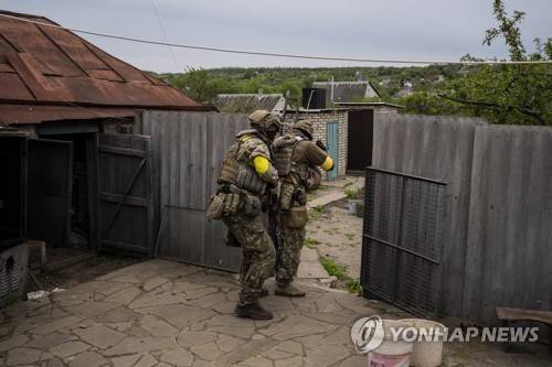 Ukrainian National Guard soldiers take positions during a reconnaissance mission in a recently retaken village on the outskirts of Kharkiv, east Ukraine, Saturday, May 14, 2022. (AP Photo/Bernat Armangue)