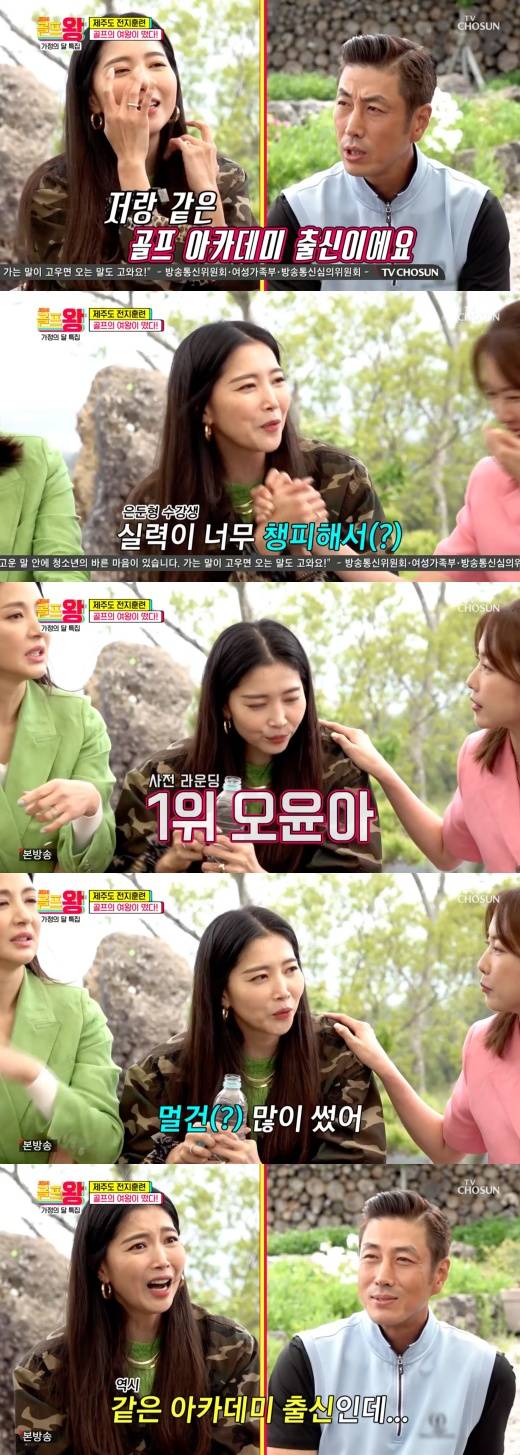 14일 밤 방송된 종합편성채널 TV조선 예능 프로그램 ‘골프왕3’에는 여배우 사인방 홍은희, 오윤아, 양정아, 윤해영이 출연해 ‘골프왕’ 팀과 대결을 펼쳤다.
