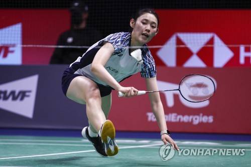 epa09946725 Sim Yu-jin of South Korea in action during her women's singles final match against Wang Zhi Yi of China at the BWF Thomas and Uber Cup Finals 2022 in Nonthaburi, Thailand, 14 May 2022. EPA/DIEGO AZUBEL