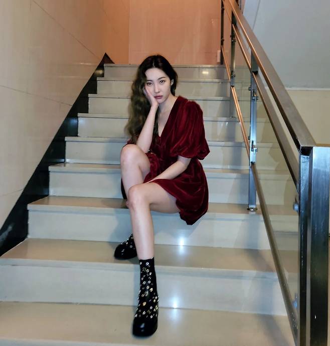 계단에 앉아 포즈를 취하고 있는 선미는 연예계 대표 슬랜더답게 극세사 각선미를 자랑해 시선을 모았다.