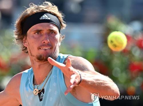 epa09946900 Alexander Zverev of Germany in action during his men's singles semi final match against Stefanos Tsitsipas of Greece at the Italian Open tennis tournament in Rome, Italy, 14 May 2022. EPA/ETTORE FERRARI