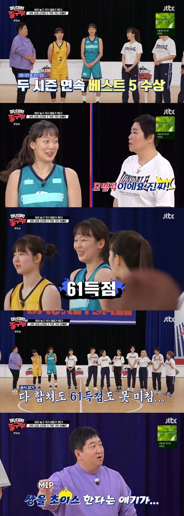 이어 MC들은 신지현이 실제로도 대단한 실력을 갖췄다고 소개했다. 신지현이 2년 연속 베스트5를 받은 것과 모범 선수상을 받았다는 내용.
