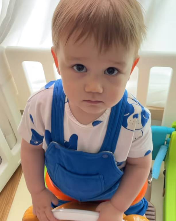 젠은 파란색 멜빵바지를 입은 채 혼자서도 잘 노는 모습이다. 젠 군의 밝은 헤어 색과 뚜렷한 이목구비가 이목을 모았다.