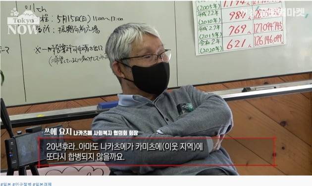 쓰에 요지 나카츠에사회복지협의회 회장 "이주보다 나카츠에 주민들이 안심하고 건강하게 살 수 있는 마을을 만드는 편이 좋다고 생각합니다. 물론 '오지 마세요'는 아니지만요."