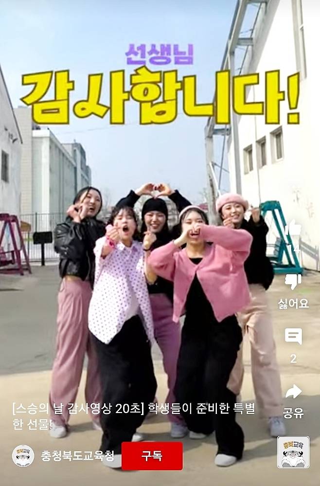 '41회 스승의 날'을 맞아 선생님에게 감사하는 마음을 전하기 위해 충북 학생들이 만든 댄스 영상이 좋은 반응을 얻고 있다.