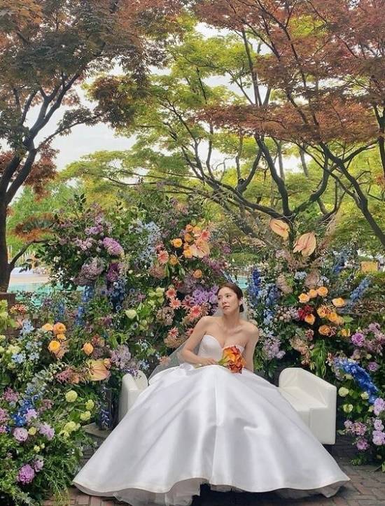 사진 속에는 지난 13일 스피드 스케이팅 전 국가대표 이규혁과 결혼식을 올린 손담비의 행복한 모습이 담겨 있다.