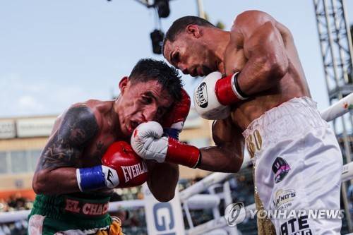 epa09947845 Emanuel Rivera of Puerto Rico (R), in action against Kevin Gonzalez of Mexico, during their 10 round super bantamweigh fight at the Dignity Health Sports Park in Carson, California, USA, 14 May 2022. EPA/ETIENNE LAURENT