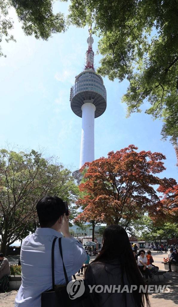 (서울=연합뉴스) 서대연 수습기자 = 15일 오전 시민들이 서울 용산구 남산타워에서 봄 나들이를 즐기며 사진을 찍고 있다. 2022.5.15