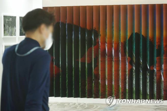 (서울=연합뉴스) 진연수 기자 = 15일 서울 중구 롯데면세점 명동본점에서 열린 '괌으로의 여행' 사진전에서 시민이 사진을 살펴보고 있다. 해외여행 수요가 회복되고 있는 고려해 마련된 이번 전시는 괌의 아름다운 풍경을 담은 40여 개 사진과 영상을 오는 22일까지 만날 수 있다. 2022.5.15