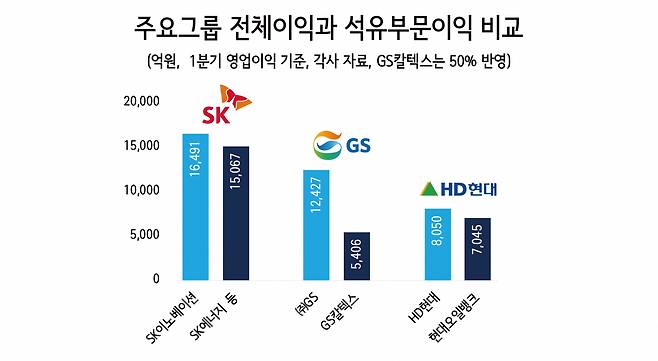 이에 따라 주요 정유사 이익이 각 그룹내 차지하는 비중이 그 어느 때보다 높아진 상황이다.