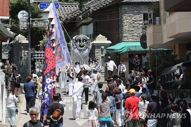 (서울=연합뉴스) 신현우 수습기자 = 15일 오후 서울 종로구 창덕궁 인근에서 궁중문화축전 골목길 퍼레이드 '구나행-흑호 납시오'가 진행되고 있다.