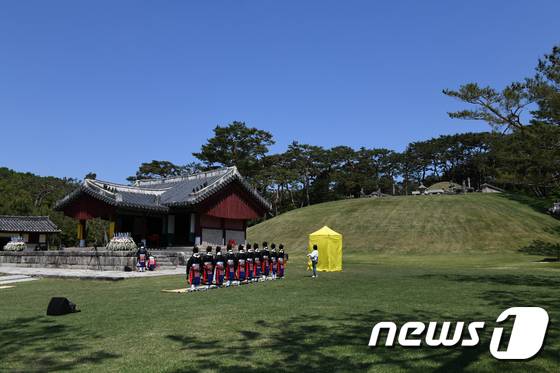 (여주=뉴스1) = 15일 오전 경기 여주 영릉에서 제625돌 숭모제전이 열리고 있다. 숭모제전은 한글 창제를 비롯해 국방, 과학, 예술 등 여러 방면에서 훌륭한 업적을 남겨 역사상 성군으로 추앙받고 있는 세종대왕을 기리는 행사로, 탄신일인 5월 15일 열린다. (문화재청 제공) 2022.5.15/뉴스1