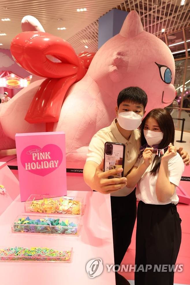 (서울=연합뉴스) 강민지 기자 = 야놀자가 15일 서울 여의도 현대백화점 더현대 서울에서 '도심 속 핑크빛 휴양지' 주제로 브랜드 팝업스토어를 운영 중이다.