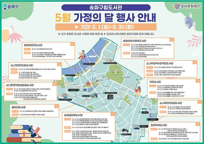 서울 송파구가 5월 가정의 달을 맞아 10개 구립도서관에서 각종 문화 행사를 개최한다.