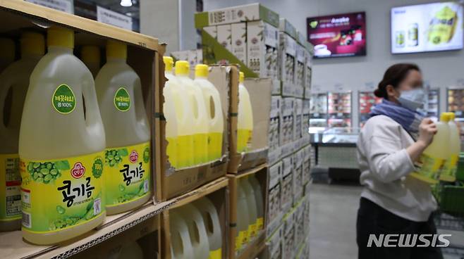 15일 오전 서울시내 창고형 대형마트에서 고객들이 식용유를 고르고 있다.