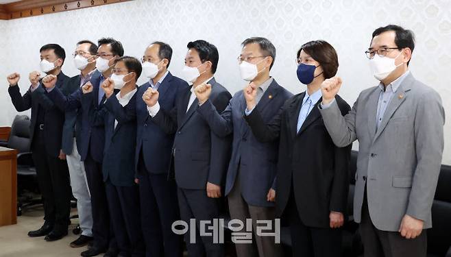 [포토]파이팅 외치는 윤석열 정부 신임 경제관계장관들