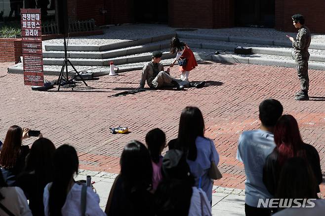 야외 공연으로 펼쳐지는 '전쟁반대 퍼포먼스 코리아'