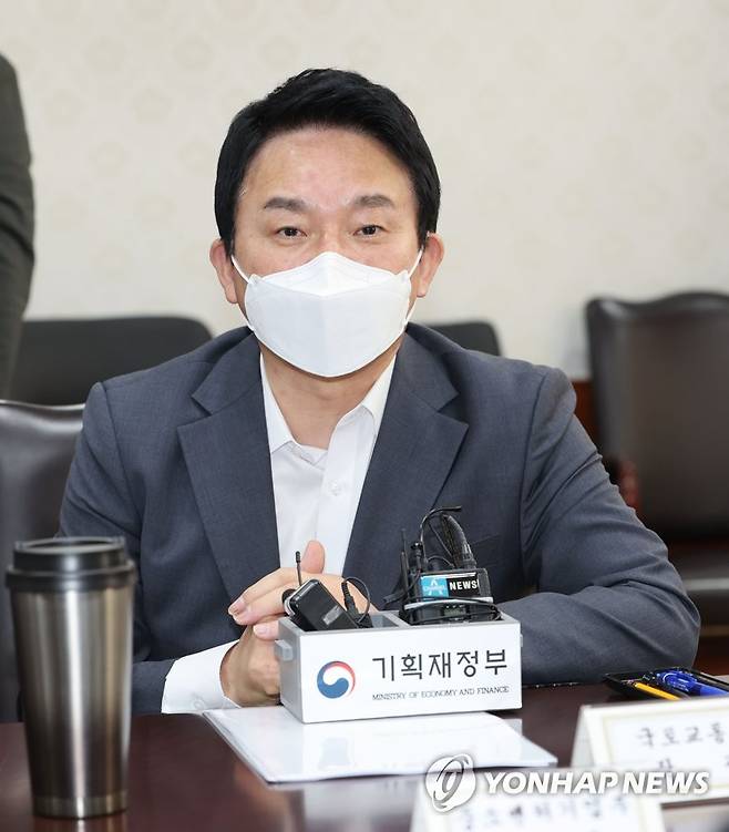(서울=연합뉴스) 김인철 기자 = 원희룡 국토교통부 장관이 15일 오후 서울 종로구 정부서울청사에서 열린 경제관계장관 간담회에서 발언하고 있다. 2022.5.15