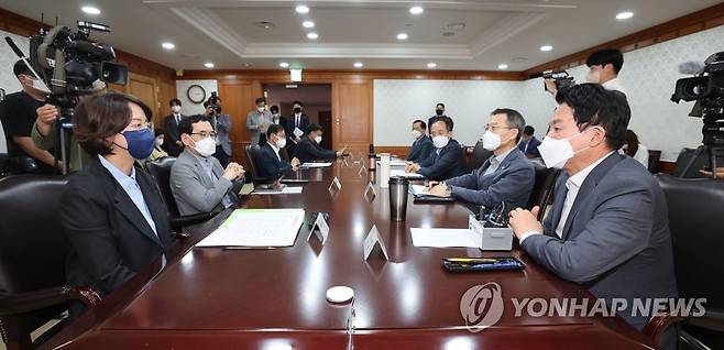 (서울=연합뉴스) 김인철 기자 = 원희룡 국토교통부 장관(오른쪽)이 15일 오후 서울 종로구 정부서울청사에서 열린 경제관계장관 간담회에서 발언하고 있다. 2022.5.15