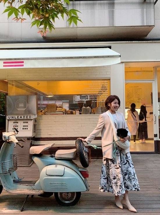 사진 속에는 지인과 함께 카페를 찾아 강아지를 안고 여유로운 시간을 보내는 김은영의 모습이 담겨 있다.