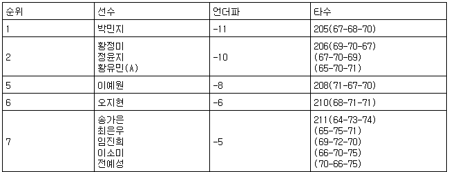 한국여자프로골프(KLPGA) 투어 NH투자증권 레이디스 챔피언십 최종순위