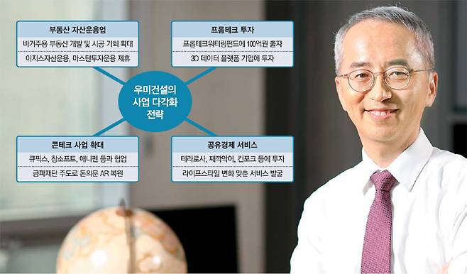 우미건설이 사업 다각화를 위해 투자하는 분야는 프롭테크(IT와 접목한 부동산), 공유경제 기업, 콘테크(Con-Tech·건설 공정 디지털화 통한 혁신) 기업 등이다. 비건설 분야에 투자를 확대하는 데에는 이 부회장의 경험이 큰 영향을 끼쳤다.