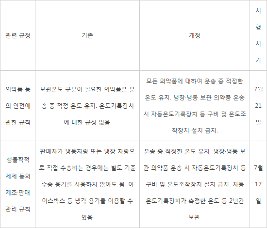 표> 의약품 콜드체인 의무화 관련 규정. 출처 식약처