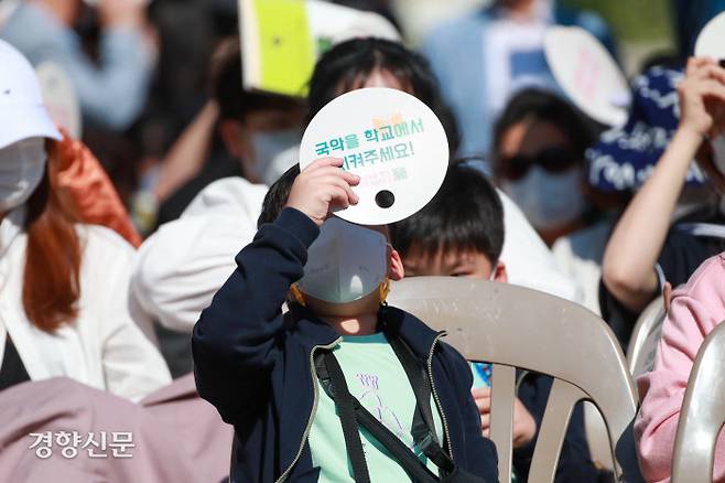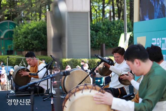 최근 교육부가 발표한 “2022년 개정 음악과 교육과정 시안”에서 국악 교육이 축소·삭제된 것에 반발하는 국악인과 시민들이 15일 서울 청계광장에 모여 문화제를 개최했다.