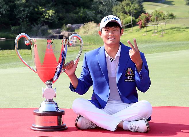 [서울=뉴시스] 추상철 기자 = 15일 경기 여주시 페럼CC에서 열린 2022 KPGA 우리금융 챔피언쉽 우승자 장희민이 트로피를 들고 기념촬영하고 있다. (사진=KPGA 제공) 2022.05.15. photo@newsis.com *재판매 및 DB 금지