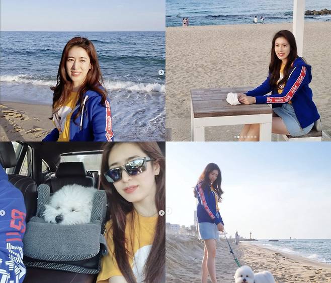 사진 속 민혜연은 강릉의 바닷가에서 즐거운 한때를 보내고 있다.