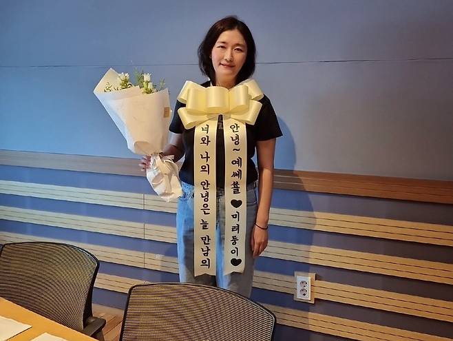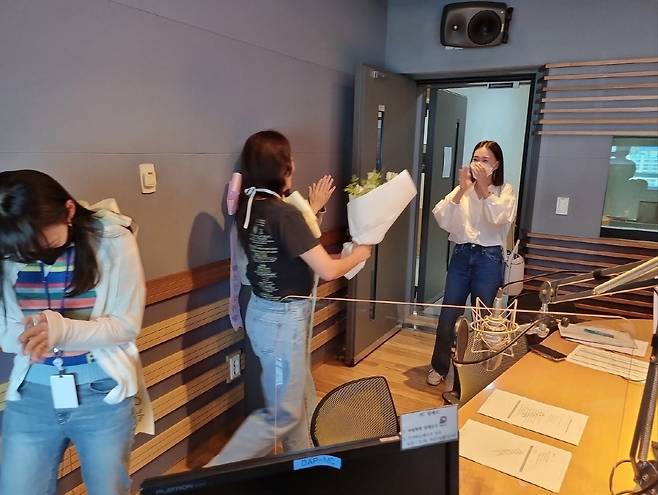 공개된 사진 속에는 MBC FM4U '오후의 발견 이지혜입니다' 제작진들에게 서프라이즈 선물을 받은 이지혜의 모습이 담겼다.