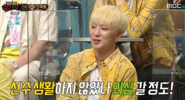 안재형은 "강승윤을 탁구 후배로 진지하게 키워보고 싶다던데?"라는 MC 김성주의 질문에 "탁구 프로그램 나와서 봤는데 폼이 너무 예쁘다. 혹시 선수 생활하지 않았나 싶을 정도로 스윙이 좋더라. 열심히 하면 최고의 생활체육 고수가 될 것 같다"고 극찬을 보냈다.