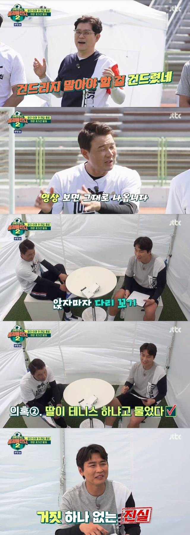 하지만 이형택은 이동국의 증언 그대로 들어오자마자 다리를 꼬곤 "그 코치님 혹시 딸이 테니스 하나요? 아, 재아인가? 재아가 테니스를 했나?"라며 은근히 딸을 언급하며 협박해 웃음을 자아냈다.
