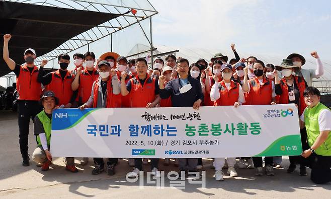 영농철 부족한 일손을 돕고 참가자들에게 농업·농촌의 가치를 전하는 '국민과 함께하는 농촌봉사활동'을 활발히 진행하고 있는 농협중앙회 지역사회공헌부는 지난 10일 코레일관광개발 그루터기 봉사단 임직원 20여명과 함께 경기 김포시의 농가에서 출하기를 놓친 부추 작물을 제거하고 비닐하우스를 보수하는 등 영농철 바쁜 농촌에 일손을 보탰다.