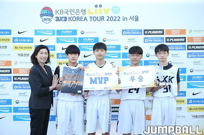 원주 YKK는 15일 서울 올림픽공원 내 3x3 전용코트에서 열린 KB국민은행 Liiv M 3x3 코리아투어 2022 1차 서울대회 중등부 결승에서 헤네시를 15-10으로 누르고 우승에 성공했다.