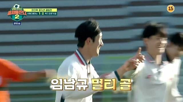 거기다 임남규는 후반전에서도 짜릿한 활약을 보여줬다. 1대 2로 지고 있는 상황 가슴으로 볼을 바운딩 해 멀티골을 기록한 것. 이런 임남규에겐 "프로 같다"는 칭찬이 쏟아졌고, 이동국 역시 "저건 프로 시합에서 나올 수 있는 것"이라고 인정을 보냈다.