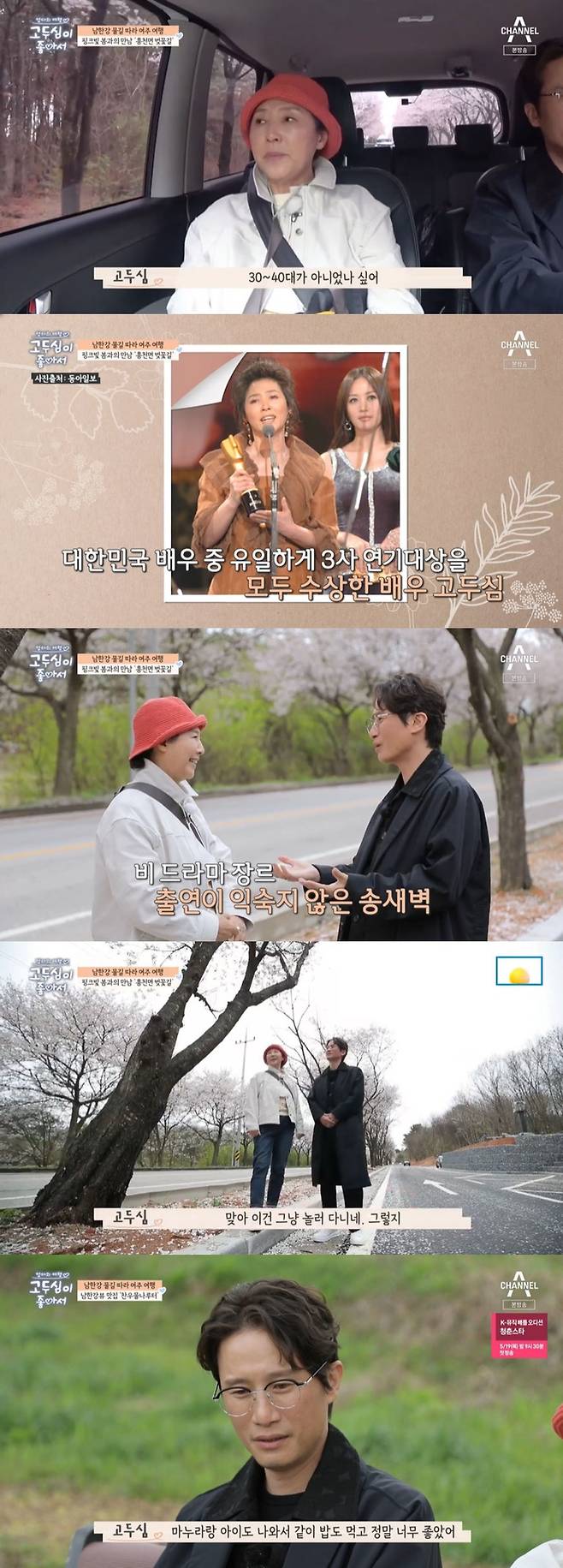 두 사람은 벚꽃이 유명한 여주에 대해 이야기했다. 송새벽은 고두심에게 "지금도 만개하시지만 선생님 인생에서 제일 만개했던 때는 언제였냐"고 물었다. 고두심은 "3~40대 때"라고 답하며 "일도 많이 했지만 힘도 좋았다. 어느 정도 뭘 아는 나이기도 했고"라고 설명했다.
