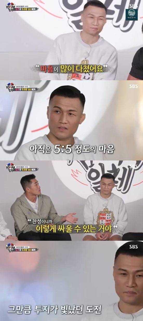 추성훈은 정찬성의 경기를 봤다고 말하면서 “진짜 잘 싸웠는데, 아까운 게 너무 많다. ‘조금만 더 했으면 좋겠다’는 마음도 있었다. 그리고 마음이 아팠다. 그런데 찬성이의 마음이 더 아플거다”고 다독였다. 이에 정찬성은 “경기 때 당한 부상보다 마음을 더 많이 다쳤다. 평생 이것만 보고 운동을 했는데, 꿈이 멈춰버리니까 거기서 다 잃은 것 같았다. 은퇴할 마음도 있다”고 말했다.