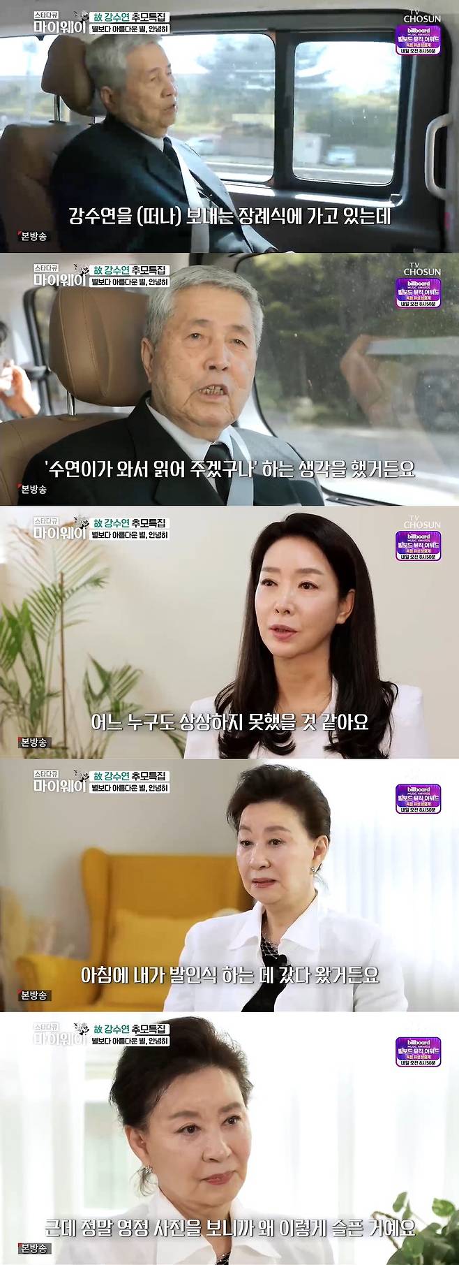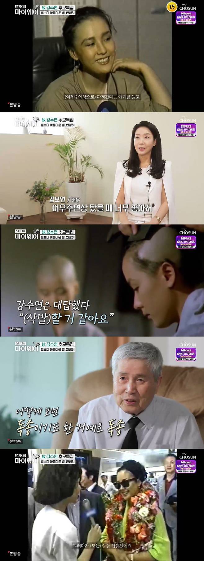 15일 방송된 TV조선 '스타다큐 마이웨이'에서는 故 강수연 추모 특집으로 꾸며졌다.