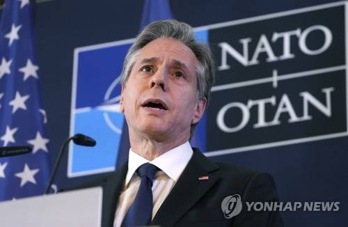 Antony Blinken, U.S. Secretary of State speaks during an informal meeting of the North Atlantic Council in Foreign Ministers' session in Berlin, Germany, Sunday, May 15, 2022. (AP Photo/Michael Sohn)
