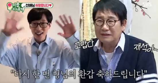 유재석은 "선배님 안녕하세요. 유재석이다. 형님게서 환갑을 맞으셨다는 이야기를 듣고 '시간이 이렇게 지났나' 이런 생각이 들면서. 저도 50이 넘었으니까. 앞으로도 형님의 개그, 웃음 열심히 보고 배우도록 하겠다. 다시 한번 축하드린다. 늘 건강하셔라. 또 뵙겠다"라며 전했다.