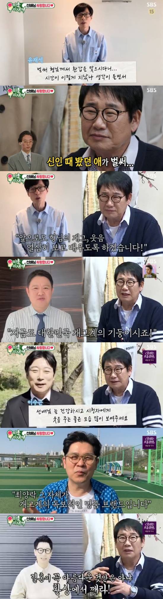 김구라는 "형님이 제가 93년도 SBS 2기 신인 때 SBS 기둥이셨는데. 지금도 대한민국 개그계의 기둥이시다"라며 존경심을 드러냈고, 이수근은 "건강하시고 항상 저희들 곁에서 좋은 모습, 열심히 시청자들에게 웃음 주는 모습 보여주시기 바란다. 오늘 좋은 시간, 행복한 시간 많이 만드시길 바란다"라며 밝혔다.