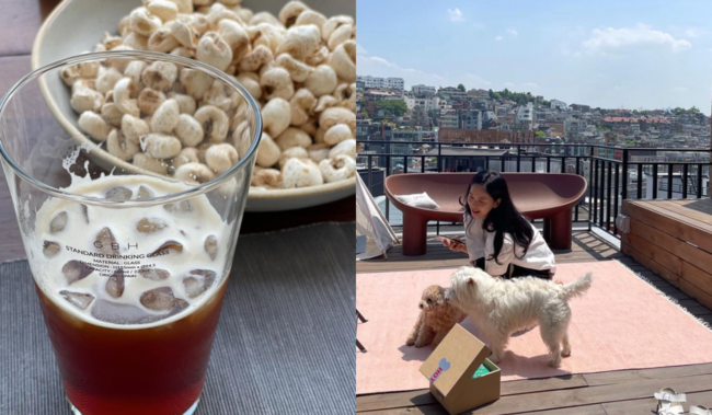 공개된 사진은 그가 강냉이와 커피 한잔으로 여유로운 일상을 보내고 있는 모습.