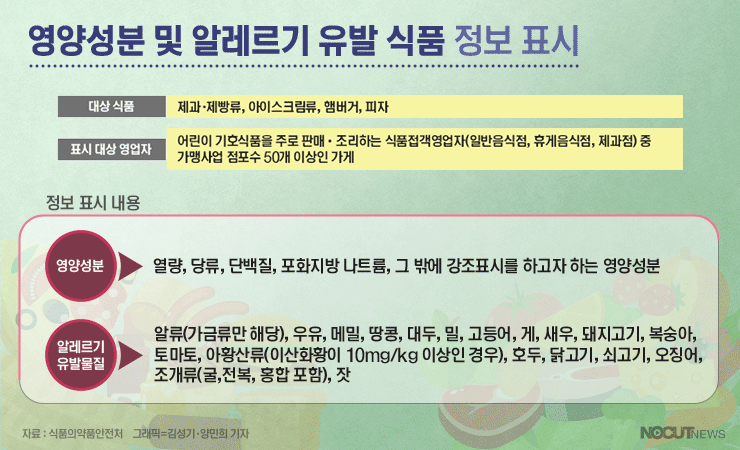아울러 "정보 표시를 누락할 시 어린이 식생활안전관리 특별법 제29조 제2항에 따라, 영양성분을 전부 표시하지 않거나 과학적인 자료 없이 임의로 표시한 경우 최대 600만 원의 과태료가 부과될 수 있다"며 "영양성분 및 알레르기 표시 기준과 방법에 맞게 표시하지 않을 때에도 최대 300만원의 과태료를 내야 한다"고 경고했습니다.