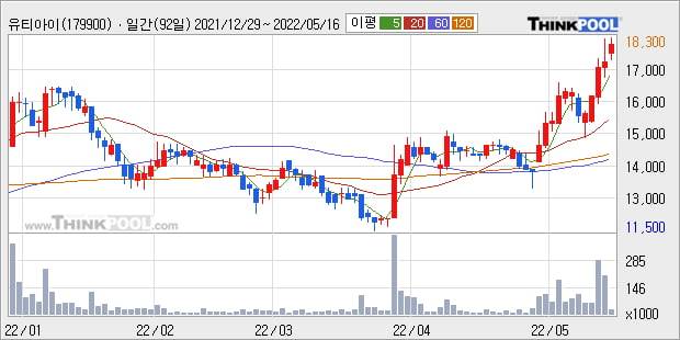 '유티아이' 52주 신고가 경신, 단기·중기 이평선 정배열로 상승세