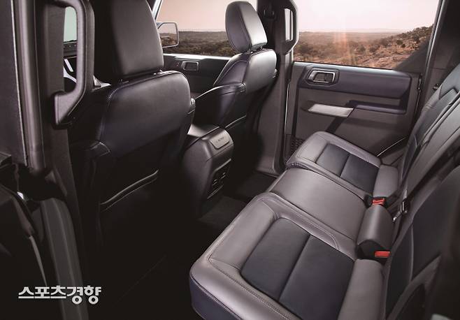 하지만 각진 브롱코 레터링 그릴에 ‘둥근 헤드램프’ 등 브롱코만의 디자인 아이덴티티는 여전하다. 또 펜더 플레어로 둘러싸인 대형 타이어 등은 1세대 브롱코 디자인의 특별하고도 독특한 아이텐티티를 잘 보여주는 대목이고 넓은 트랙, 높은 지상고, 짧은 전후면 돌출부 등은 아웃도어 주행에 최적화된 견고한 바디 디자인이다.