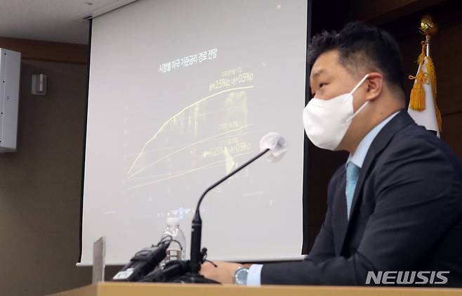 [세종=뉴시스] 강종민 기자 = 정규철 KDI 경제전망실장이 16일 오전 세종시 정부세종청사에서 '미국의 금리인상과 한국의 정책대응'에 대해 발표하고 있다. 2022.05.16. ppkjm@newsis.com