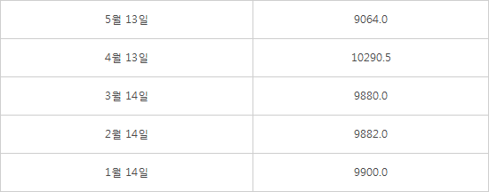 구리 현물 톤당 시세(단위 달러)